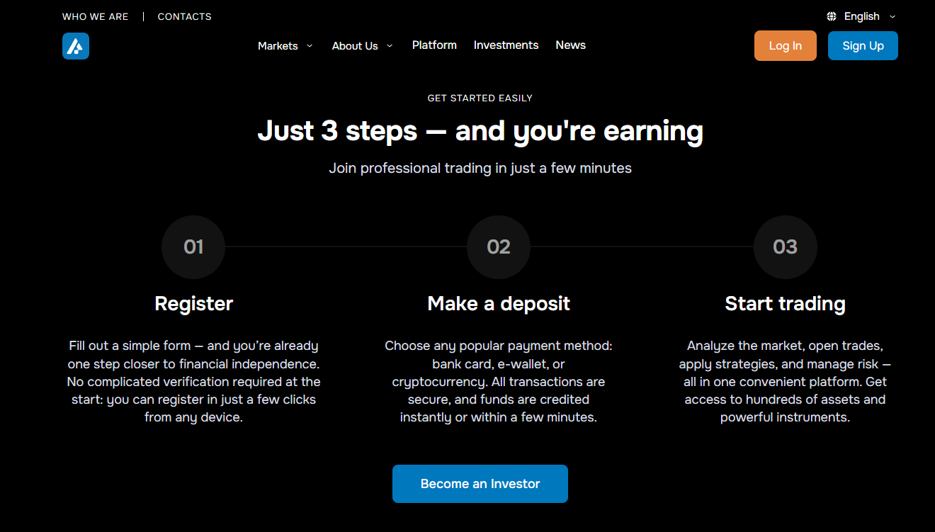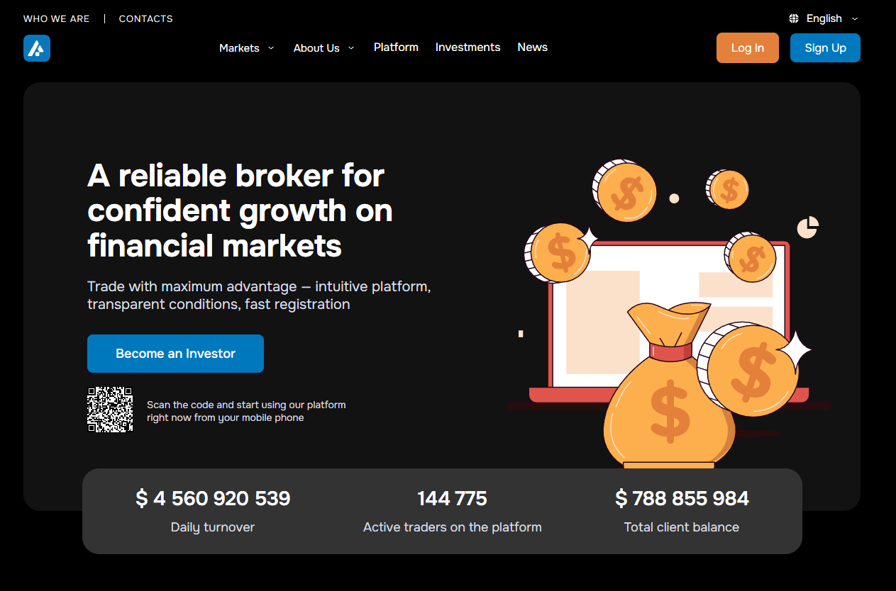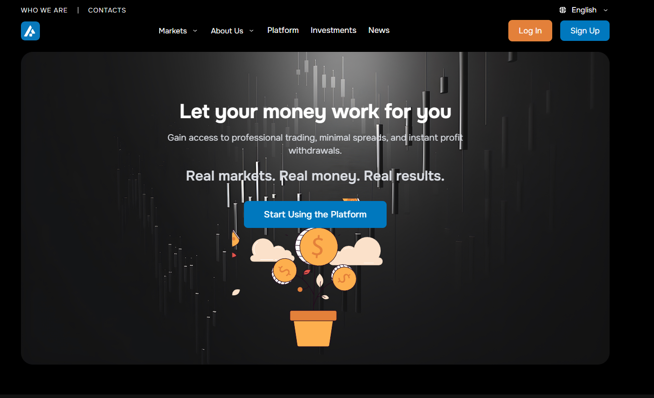 The website portrays the broker as an experienced and reputable institution. But these claims are not supported by verifiable data, licensing, or corporate transparency.