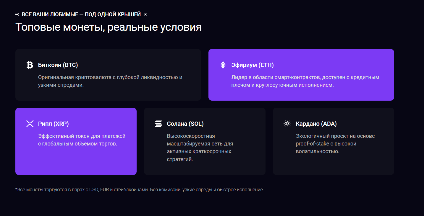 This type of multi-asset offering is common and designed to attract a broad audience. However, the platform does not provide detailed conditions for these instruments.