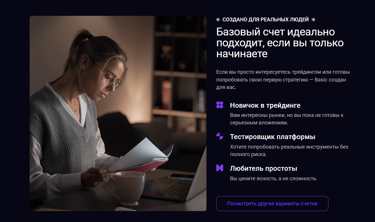 The company states that higher-tier accounts unlock additional features, better tools, and improved trading conditions. However, these differences are not clearly defined. The descriptions remain general, without specifying measurable benefits.