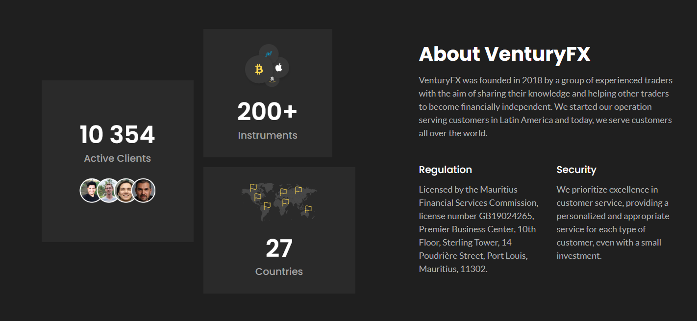 VenturyFX states that it is regulated by the Financial Services Commission (FSC) of Mauritius and refers to a specific license number. However, these claims are not supported by verifiable documentation. The website does not provide a copy of the license, does not link to an official regulator register entry, and does not disclose the current status or scope of the alleged authorization.